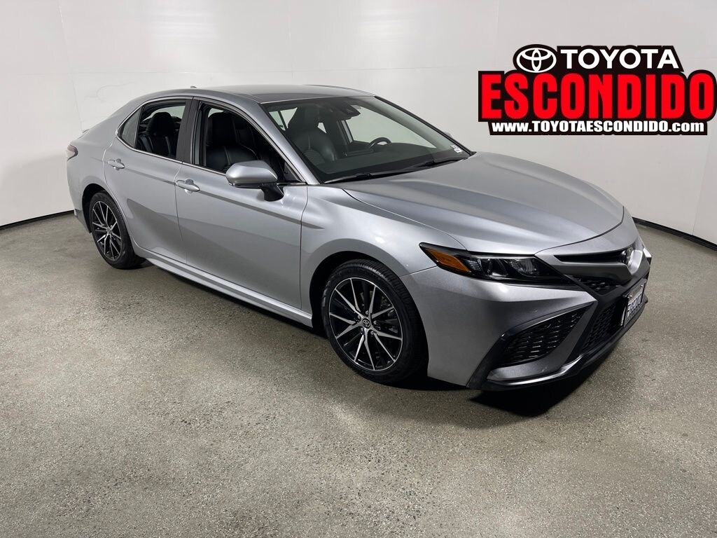 Certified. Silver 2023 Toyota Camry SE FWD 8-Speed Automatic 2.5L I4 DOHC 16V Black Artificial Leather, 8.0J x 18" Alloy Wheels, ABS brakes, Accident Free Carfax History, Active Cruise Control, Alloy wheels, Apple CarPlay/Android Auto, Brake assist, Electronic Stability Control, Front dual zone A/C, Heated door mirrors, Illuminated entry, Low tire pressure warning, One Owner, Power driver seat, Remote keyless entry, Spoiler, Sport SofTex Seat Trim w/Fabric Inserts, Traction control, Variably intermittent wipers.