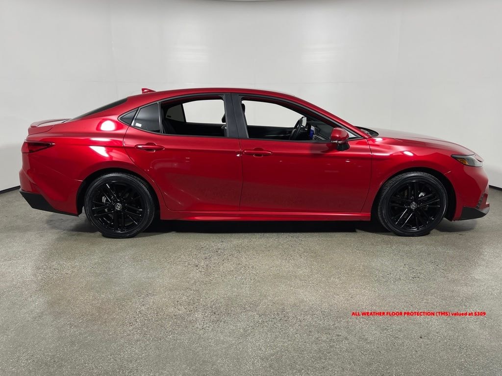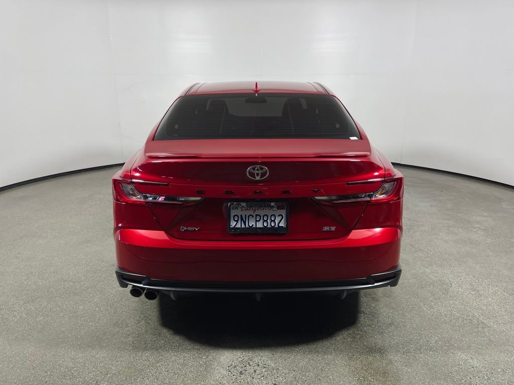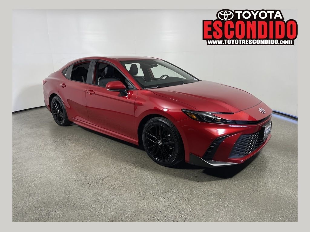 Certified. Red 2025 Toyota Camry SE FWD eCVT 2.5L 4-Cylinder 16V DOHC 2.5L 4-Cylinder 16V DOHC, Black Artificial Leather, ABS brakes, Accident Free Carfax History, Active Cruise Control, Alloy wheels, Apple CarPlay/Android Auto, Brake assist, Electronic Stability Control, Exterior Parking Camera Rear, Front dual zone A/C, Heated door mirrors, Illuminated entry, Low tire pressure warning, One Owner, Power door mirrors, Power driver seat, premium paint, Remote keyless entry, Spoiler, Traction control, Turn signal indicator mirrors, Wheels: 18" Black-Finished Alloy.