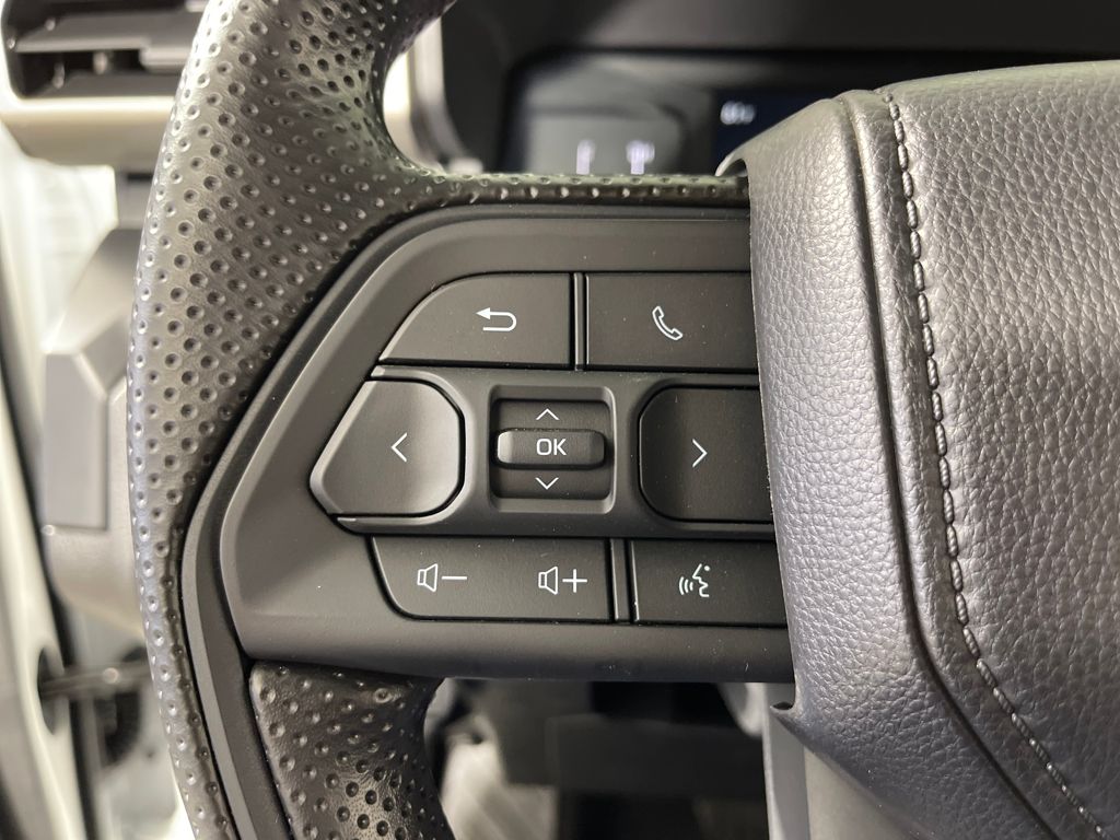 - Polyurethane manual tilt/telescopic steering wheel with phone, audio, display/infotainment, and driver assist controls.