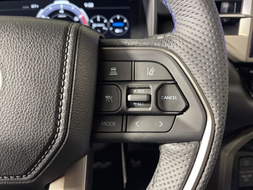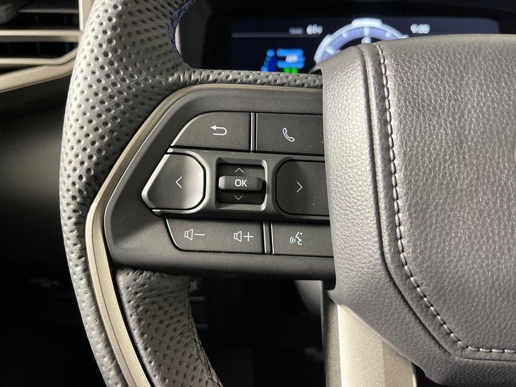 - Leather-wrapped power tilt/telescopic steering wheel with phone, audio, display/infotainment and driver assist controls.