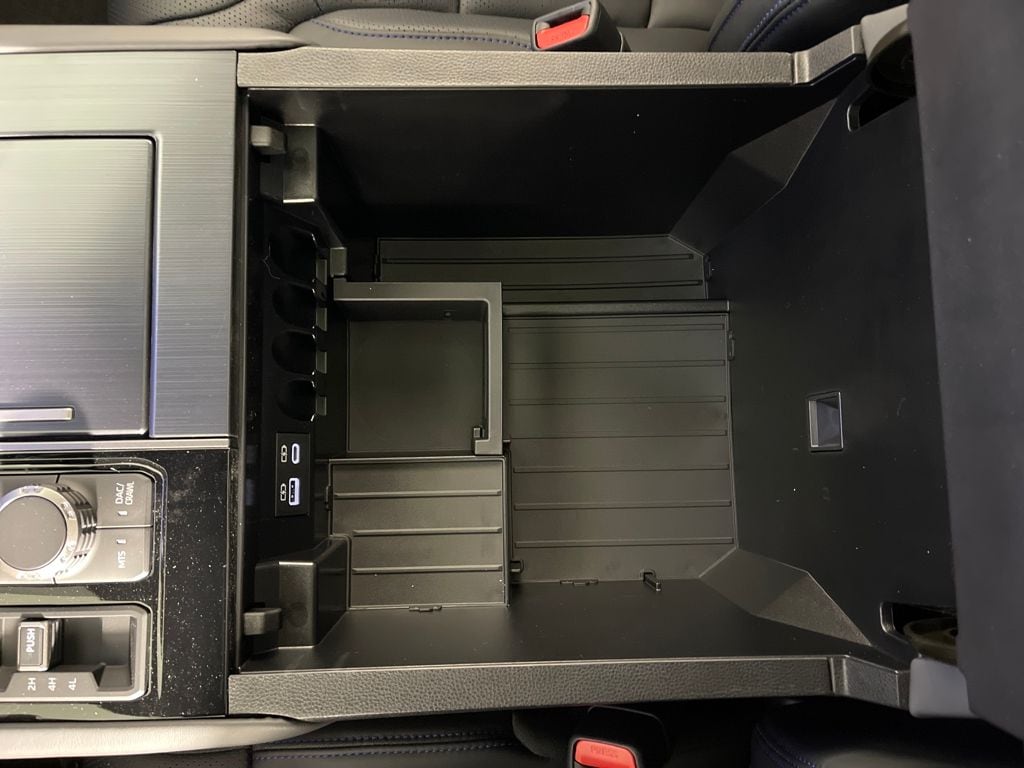 - Illuminated center console storage bin and glove box.