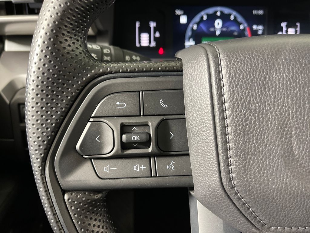 - Polyurethane manual tilt/telescopic steering wheel with phone, audio, display/infotainment, and driver assist controls.