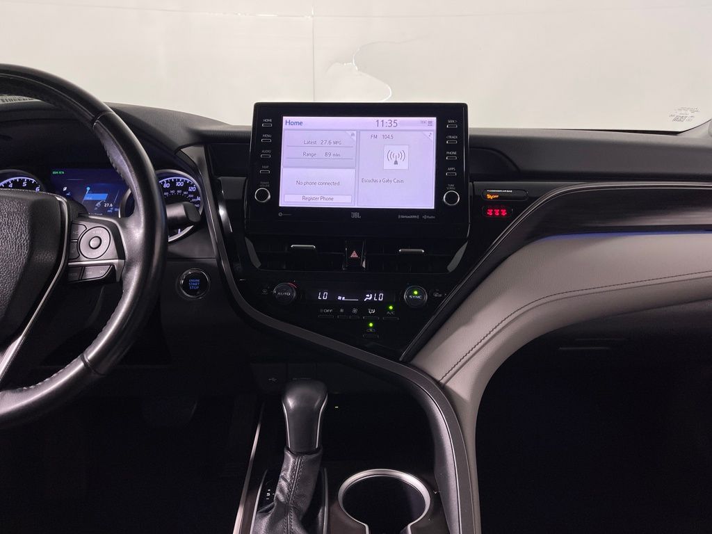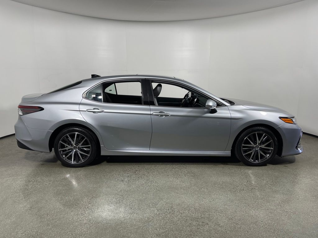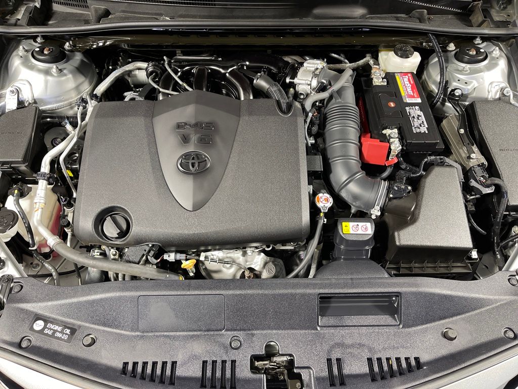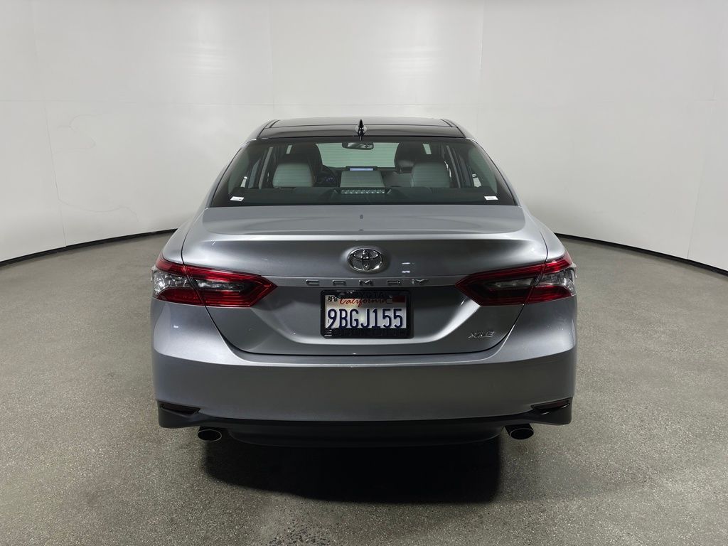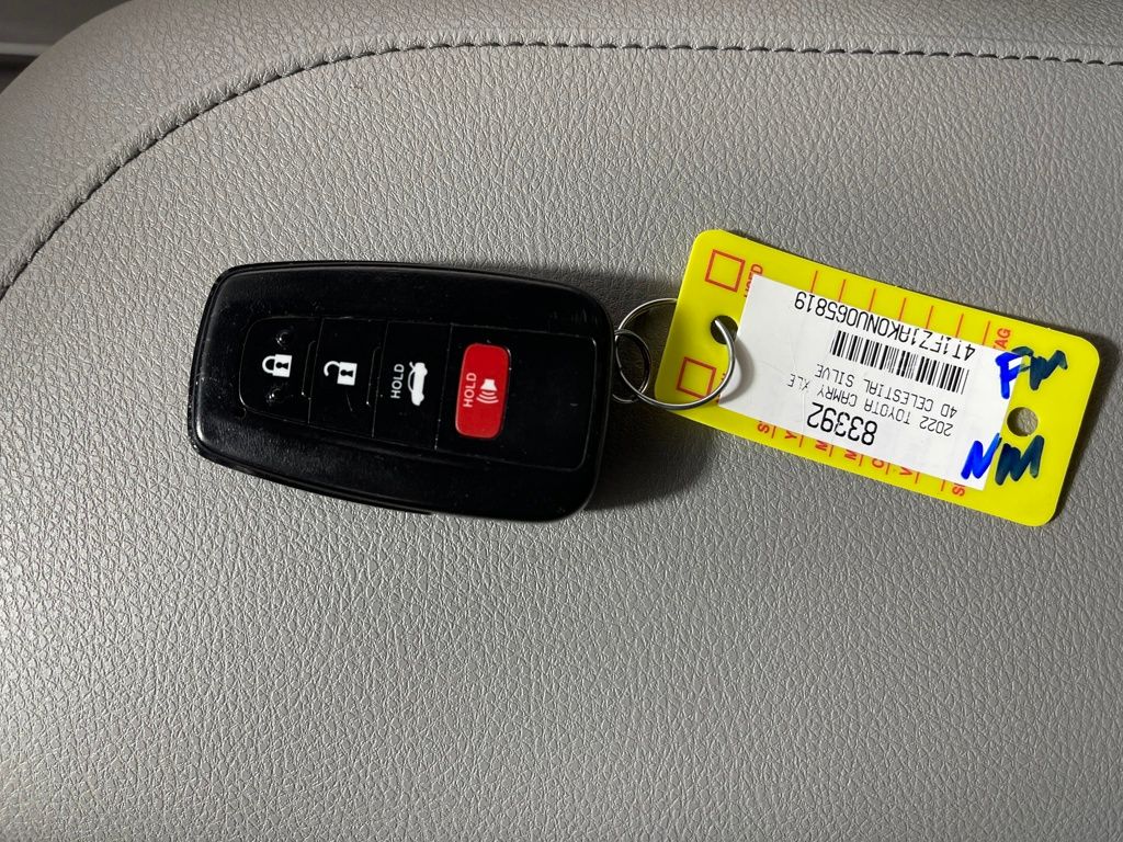 Certified. Silver 2022 Toyota Camry XLE FWD 8-Speed Automatic 3.5L V6 DOHC 24V Gray Leather.